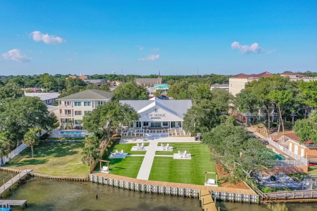 Welcome to The Venue, where coastal charm meets chic elegance in the heart of downtown Fort Walton Beach. Nestled along the waterfront, our unique and fresh event space offers a captivating blend of modern sophistication and laid-back coastal vibes. Picture your dream wedding or special event set against the backdrop of our stunning manicured lawn, with the gentle breeze from the nearby waters adding a touch of romance.